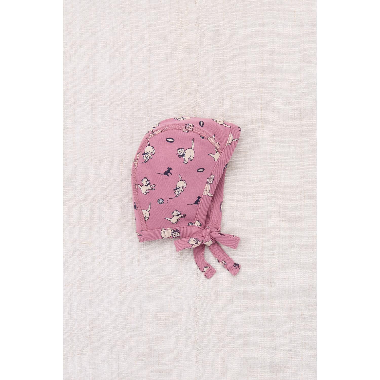 Misha&Puff Baby Pima Bonnet Antique Rose Cat & Mouse(6-12m)