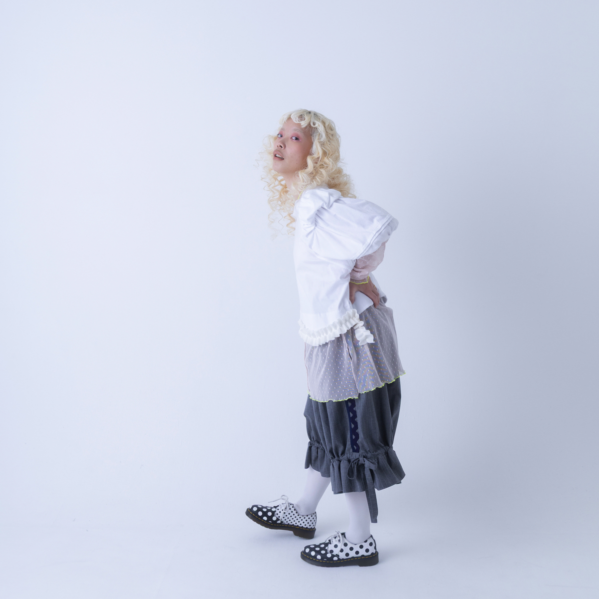 frankygrow WING SHOULDER FRILL TEE white