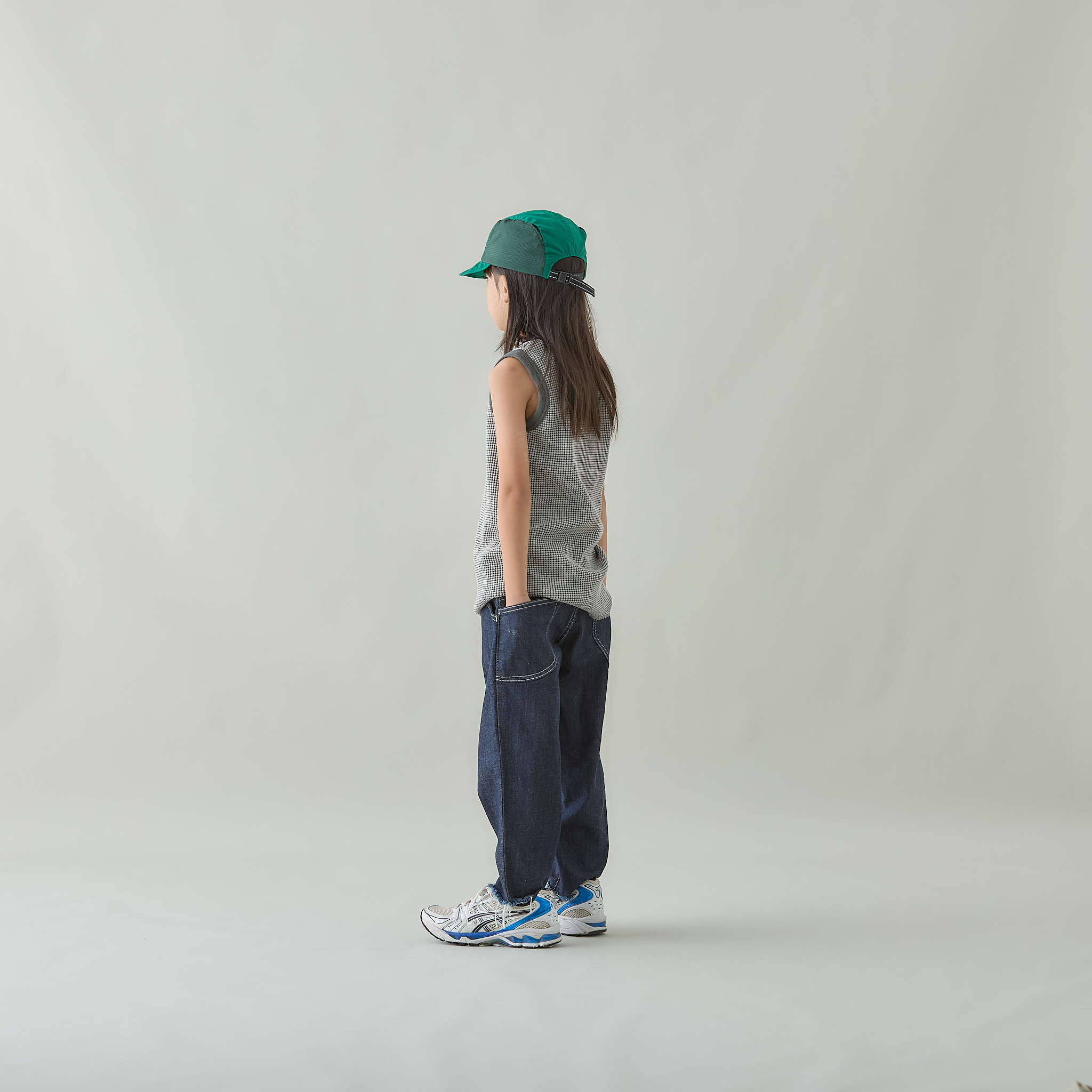 バイカラー(2配色)で作った、細かいチェック柄の様に見える新鮮な印象のオリジナルのワッフル素材を使用したタンクトップです。
