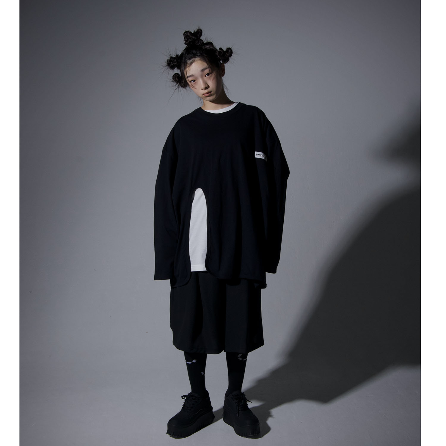 UNIONINI slit long sleeved tee black